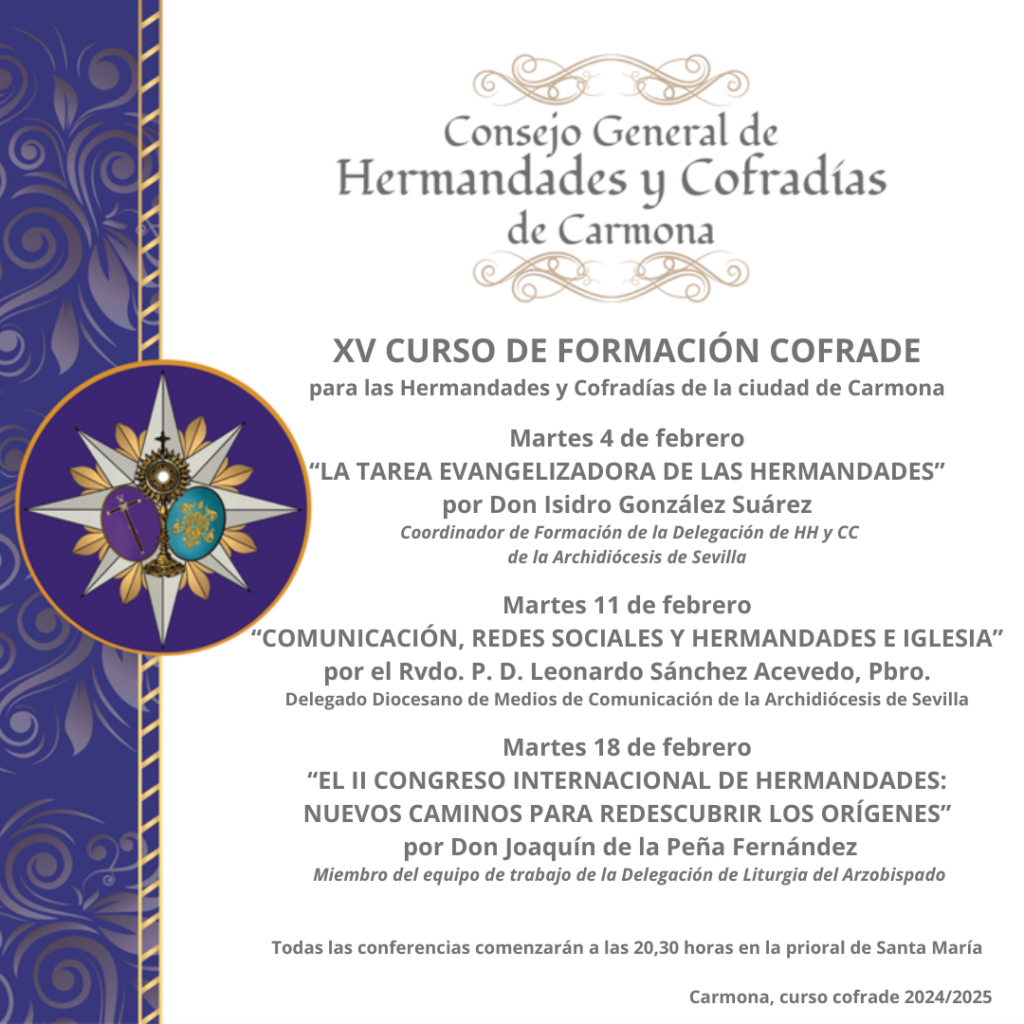 XV CURSO DE FORMACIÓN PARA LAS HERMANDADES Y COFRADÍAS DE CARMONA